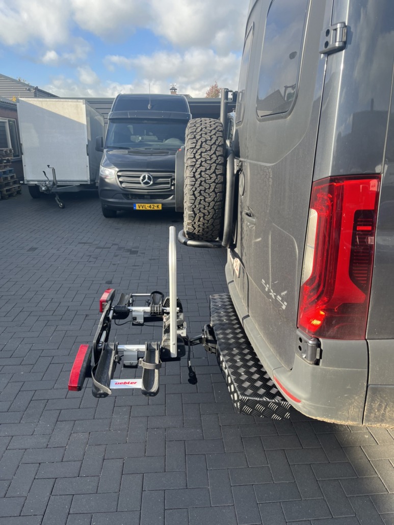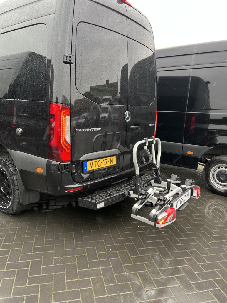 Hinweis: Die Kombination aus VanStep und einem Standard-Fahrradträger ist leider nicht möglich, da sich die Türen sonst nicht mehr öffnen lassen. Stattdessen benötigen Sie eine Kombination aus VanStep und einem herunterklappbaren Fahrradträger. Ab 1555 € zzgl. MwSt. bei uns erhältlich.
