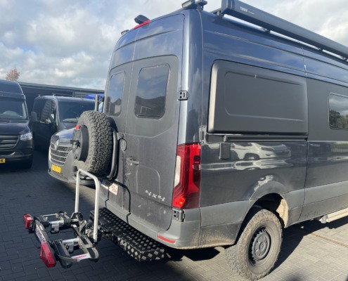 Haben Sie einen 4 × 4‑Buscamper mit einem Ersatzrad am Heck? Wegen des Ersatzrades ist ein Standard-Fahrradträger oft nicht möglich. Für VanStep ist das kein Problem! Die Kombination einer VanStep-Trittstufe mit einem ausklappbaren Fahrradträger ist die perfekte Lösung. So müssen Sie keine Kompromisse hinsichtlich Platz oder Zugänglichkeit eingehen. Alles bleibt ordentlich, zugänglich und funktional.